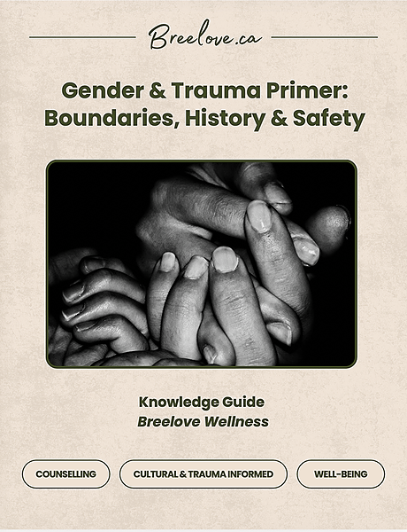 This resource, like all offerings in our digital library, was co-created by the Breelove collective: a team of culturally rooted, trauma-informed practitioners, drawing from real moments in real healing spaces. At breelove.ca, we offer more than care, we create it in community. Our practice centers Black, Indigenous, racialized, queer, and other marginalized communities in the Maritimes, while holding space for all bodies throughout Turtle Island and Canada. Our approach combines clinical counselling with community wisdom: trauma-informed support, anti-oppressive frameworks, and real tools for emotional resilience. We offer 1:1 therapy, live support groups, self-paced healing courses, digital downloads like this one, and a free online community where you’re never expected to heal alone. Because we believe that we each deserve to be well, and to be witnessed as we get there.