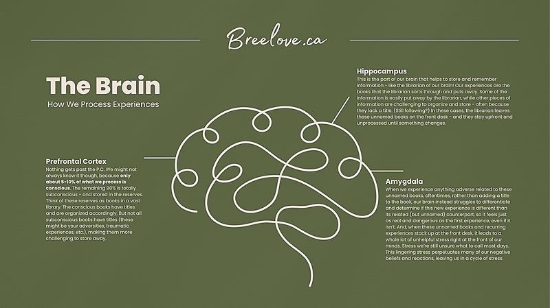 This handout offers a simple, visual explanation of how the brain processes experiences through three key regions: the prefrontal cortex, hippocampus, and amygdala. Using an accessible library metaphor, it illustrates how memories are stored, organized, or left unprocessed, especially during stress or trauma. The content helps normalize why some experiences linger as emotional reactions without clear context, and how unresolved stress can affect beliefs, reactions, and regulation. Structured for quick understanding, the handout supports insight without overwhelm. Readers leave with greater clarity about their nervous system, increased self-compassion, and a foundational understanding that supports healing, reflection, and therapeutic work.