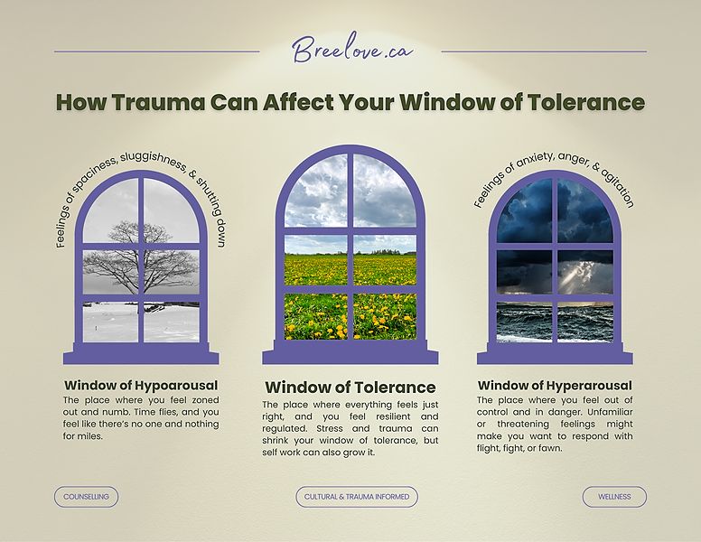 This handout offers a clear, visual explanation of how trauma can narrow your window of tolerance and influence emotional regulation. It introduces three core nervous system states;hypoarousal, regulation, and hyperarousal, using accessible language and imagery to help you recognize how stress and trauma affect your body and emotions. The handout is structured for quick understanding, making it easy to identify when you feel shut down, overwhelmed, or balanced. Readers gain insight into why certain reactions occur and how self-work and support can gradually expand their window of tolerance. By understanding these patterns, individuals are better equipped to respond to stress with awareness, patience, and more intentional care.
